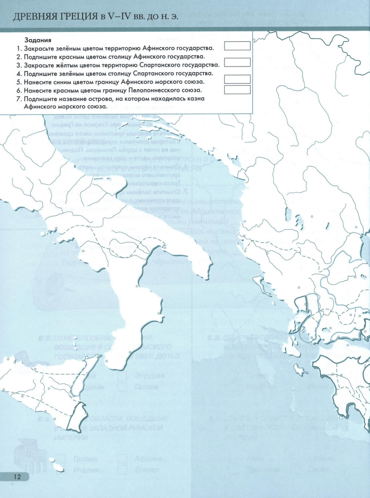 Древняя Греция - контурная карта для печати АСТ-Пресс ФГОС Колпаков, Пономарев