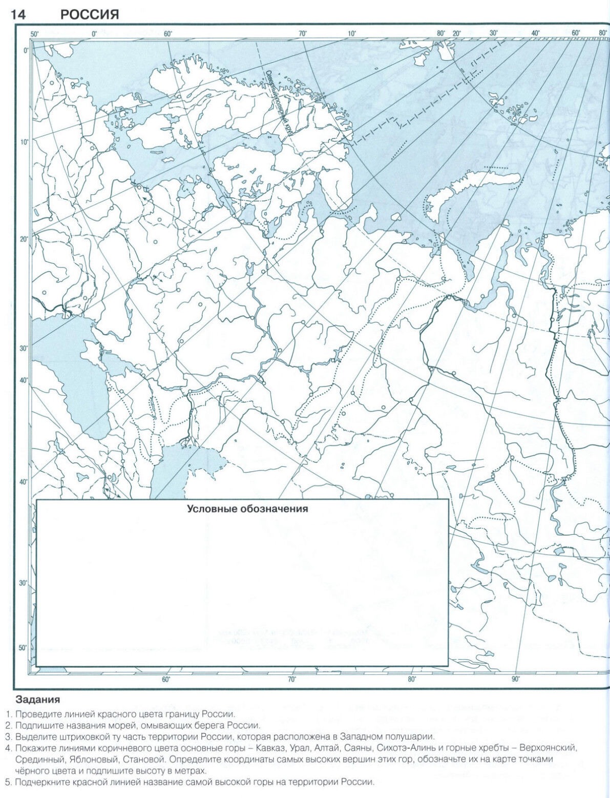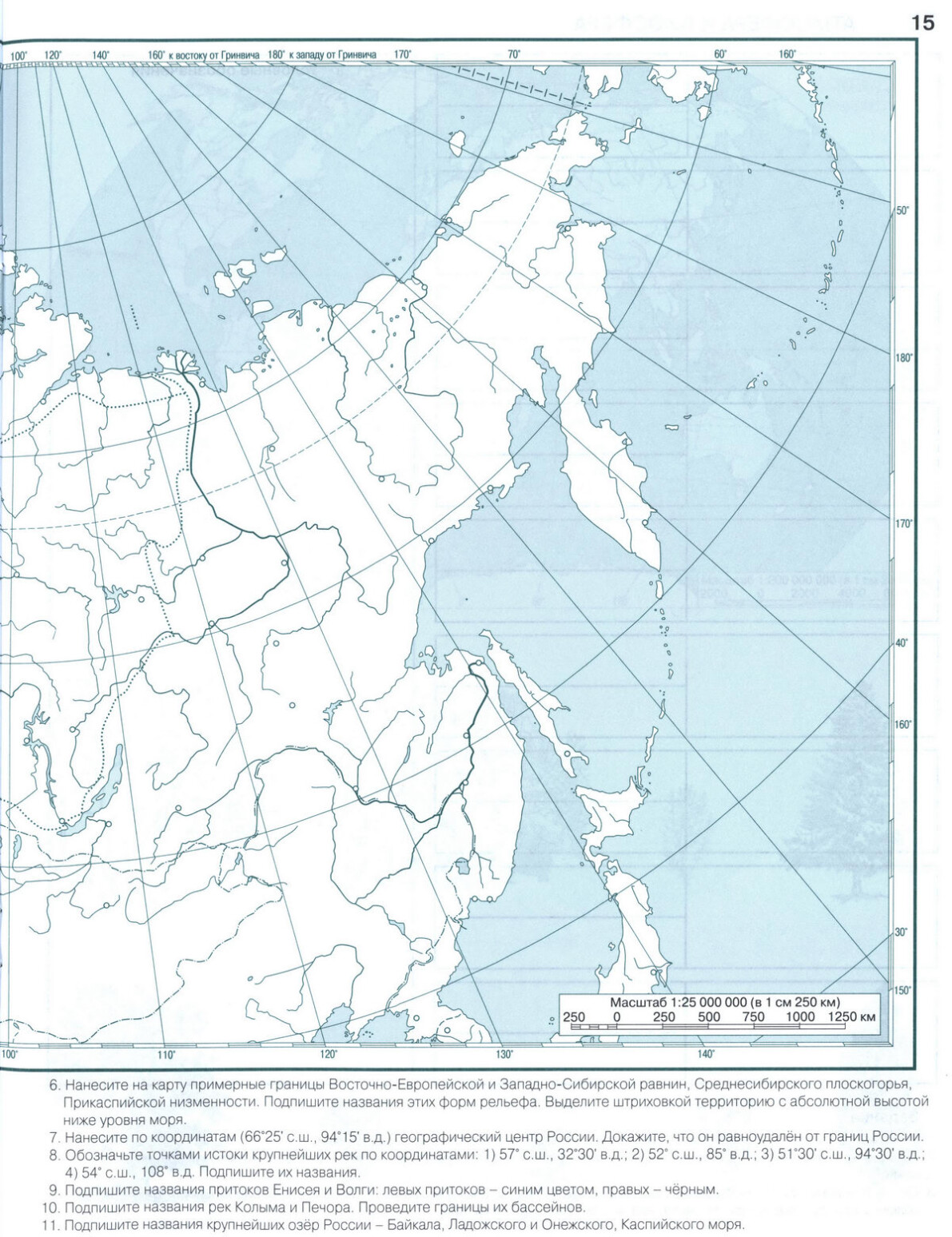 Контурная карта России - 6 класс география стр 14, 15 атласа Душина, Летягин.