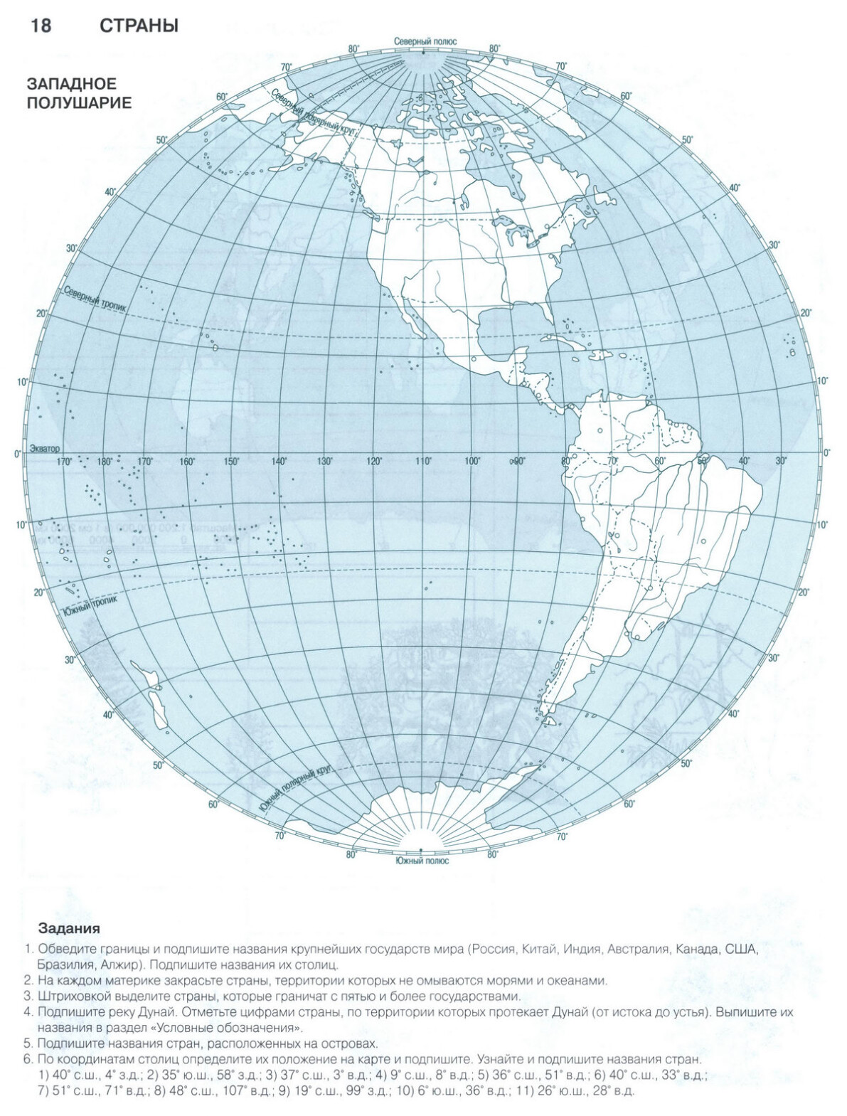 Страны - контурная карта - стр 18, 19 география 6 класс Душина, Летягин.