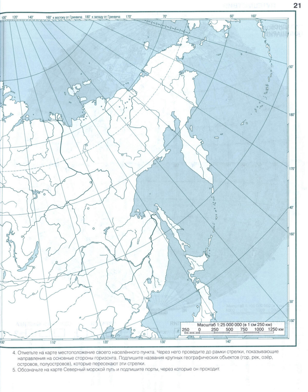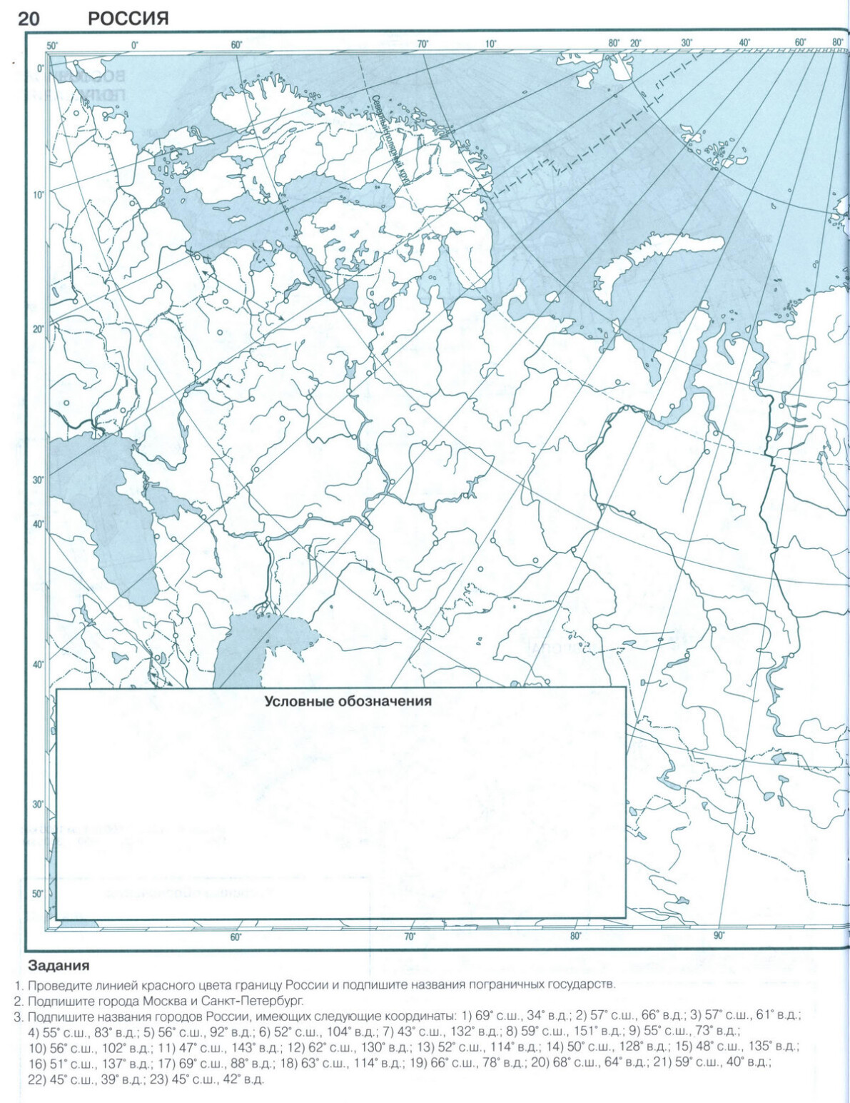 Контурная карта России - скачать и распечатать, 6 класс география стр 20, 21