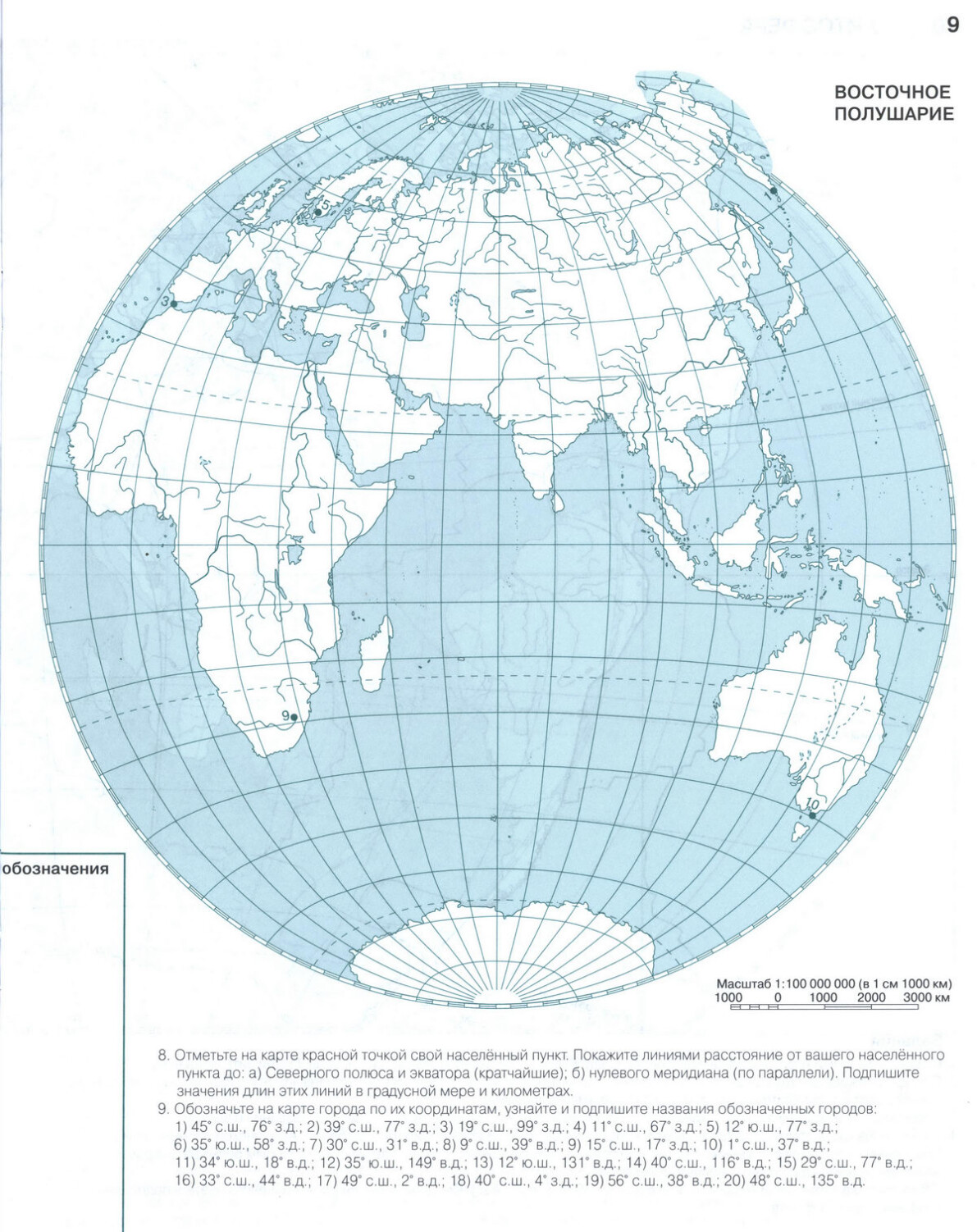 Географические координаты - контурная карта стр 8, 9 Душина, Летягин.