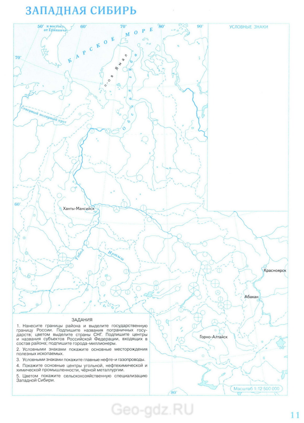 Чистая контурная карта "Западная Сибирь" - скачать и распечатать.
