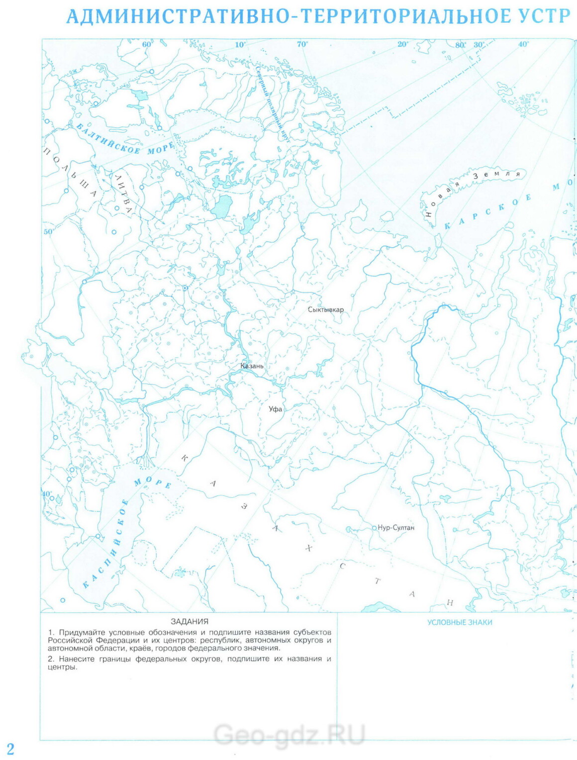 Контурная карта Административно-территориальное устройство России