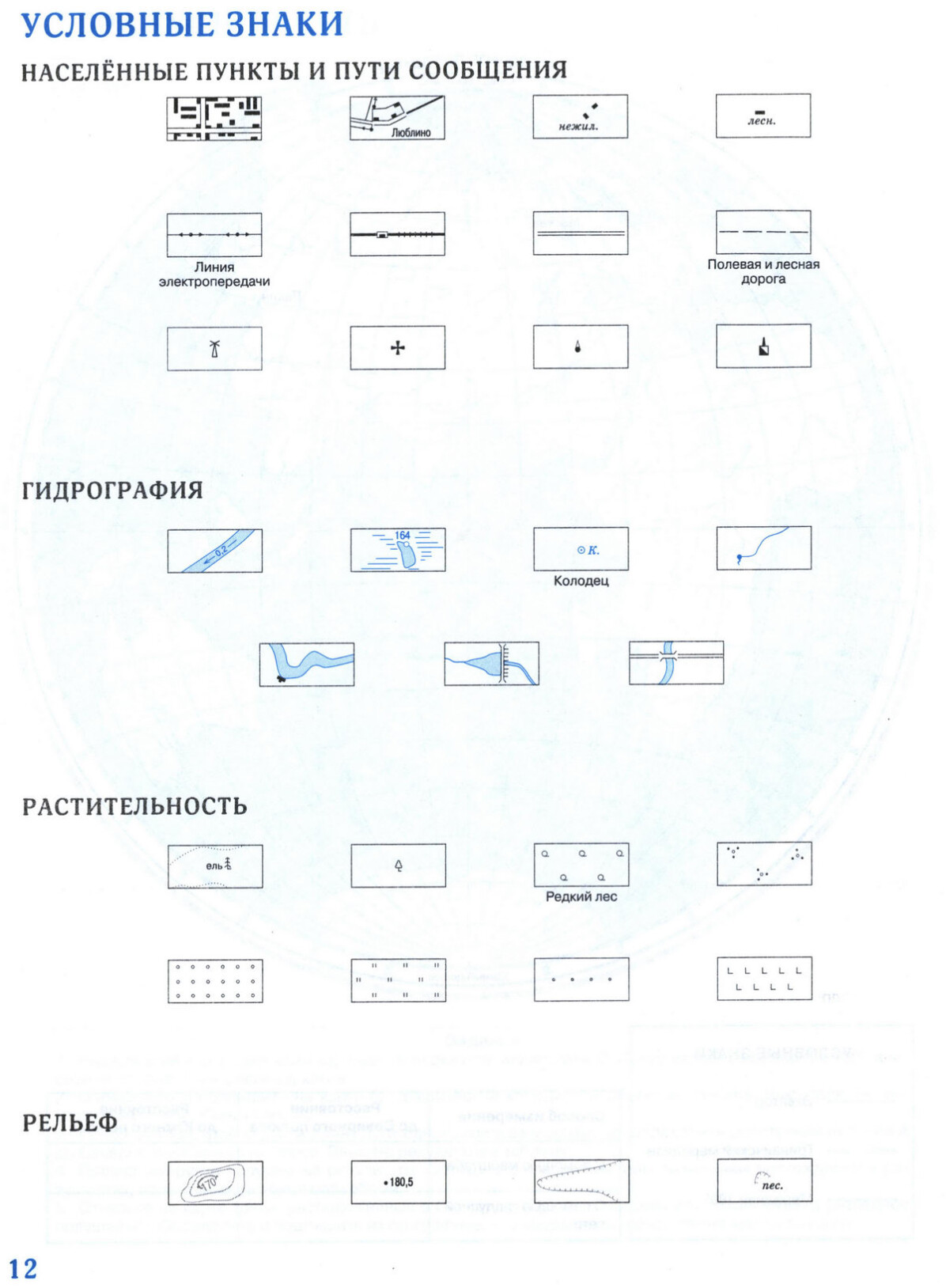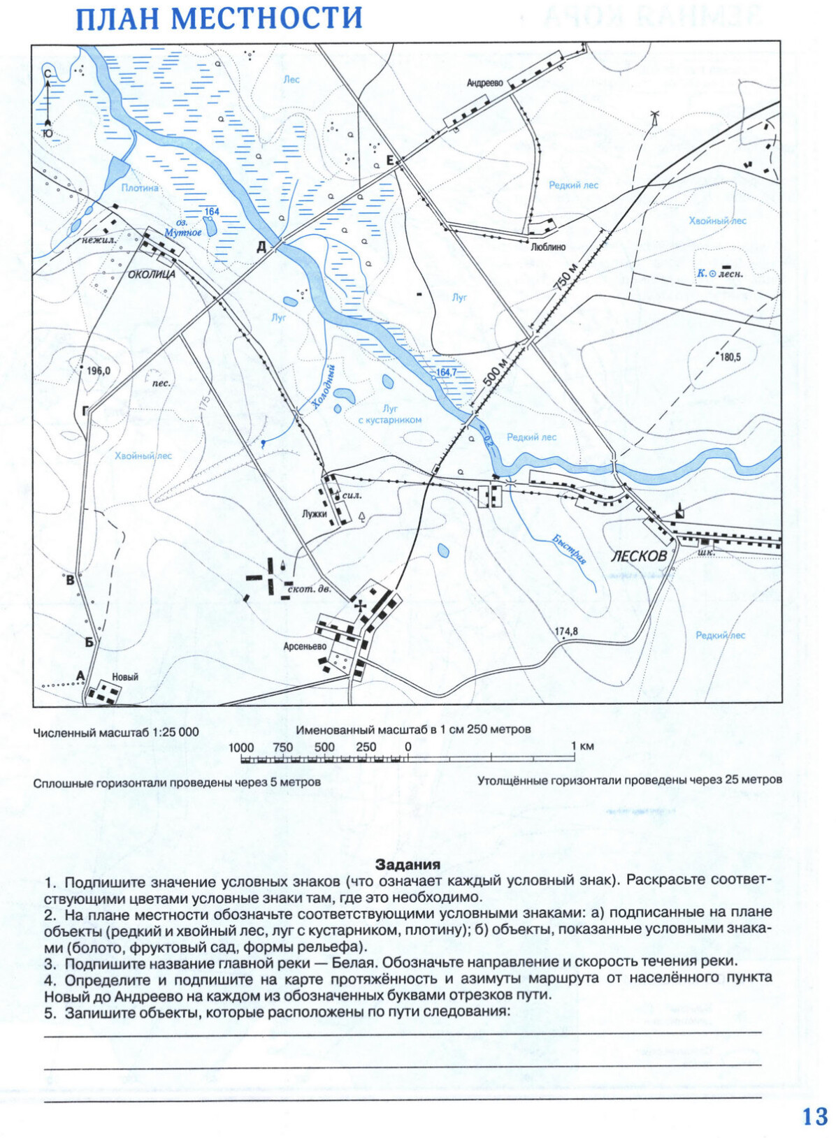 Контурная карта для печати - План местности, условные знаки. Географии 5 класс Дрофа, скачать и распечатать