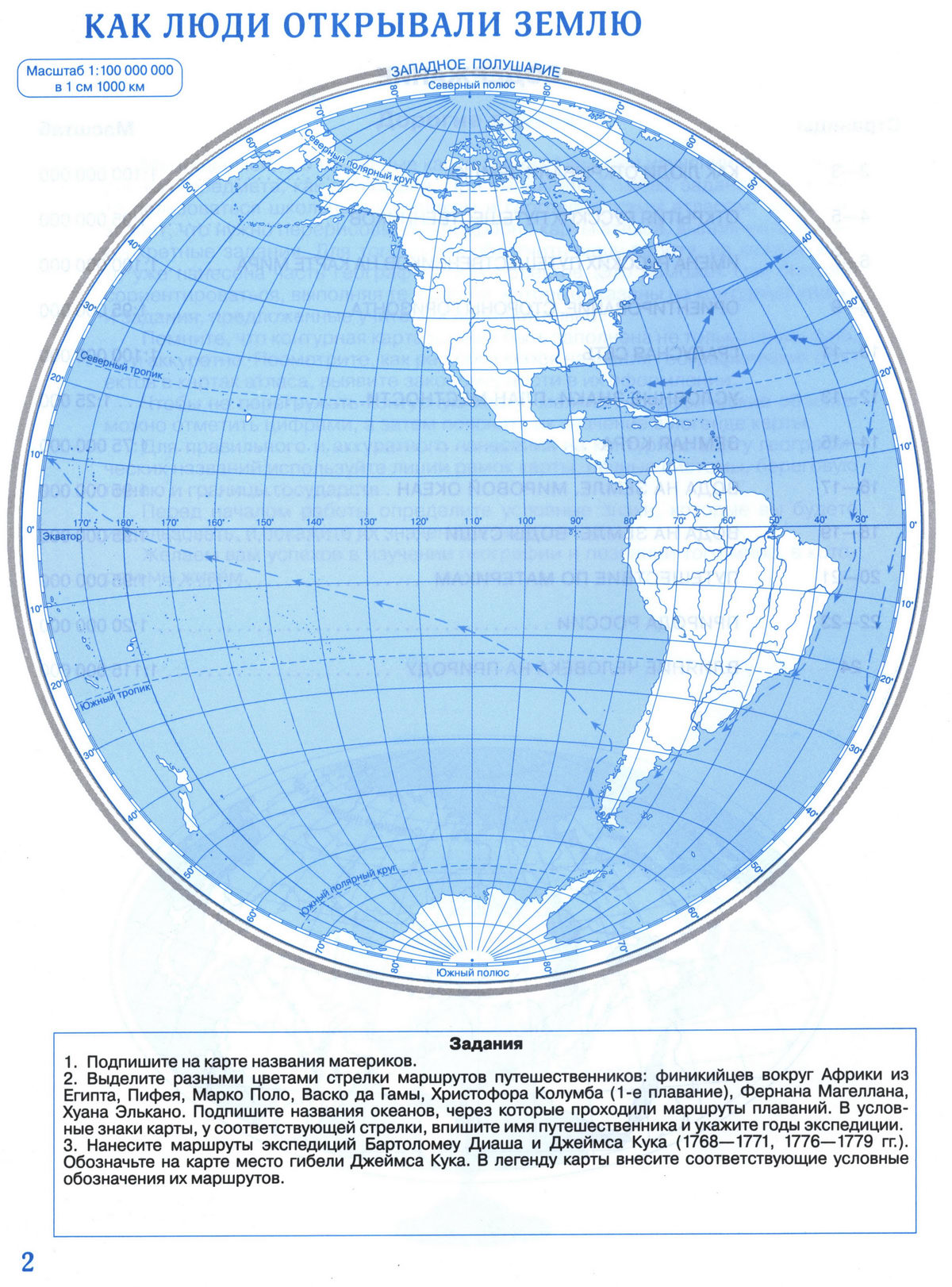 Контурная карта для печати - Как люди открывали Землю. География 5 класс Дрофа, скачать и распечатать бесплатно