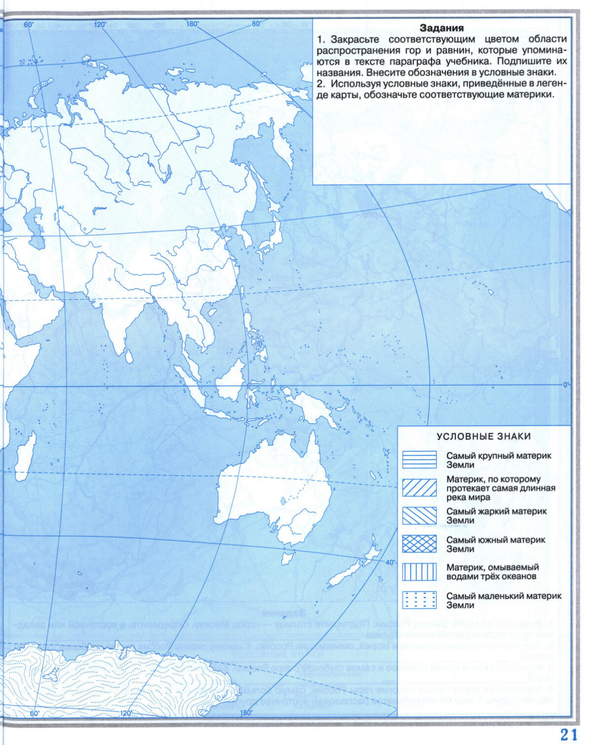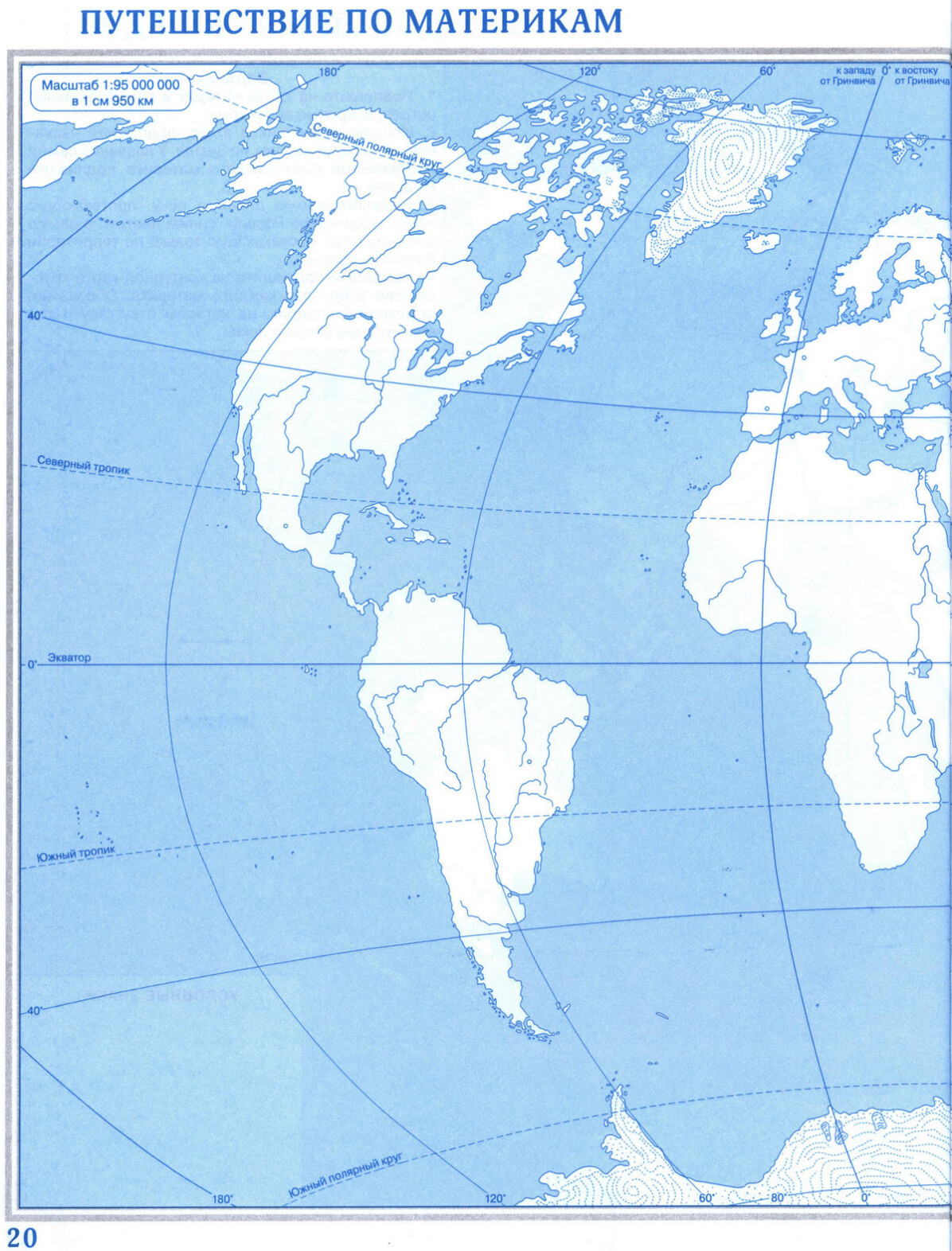 Контурная карта для печати - Путешествие по материкам. Географии 5 класс Дрофа, скачать и распечатать