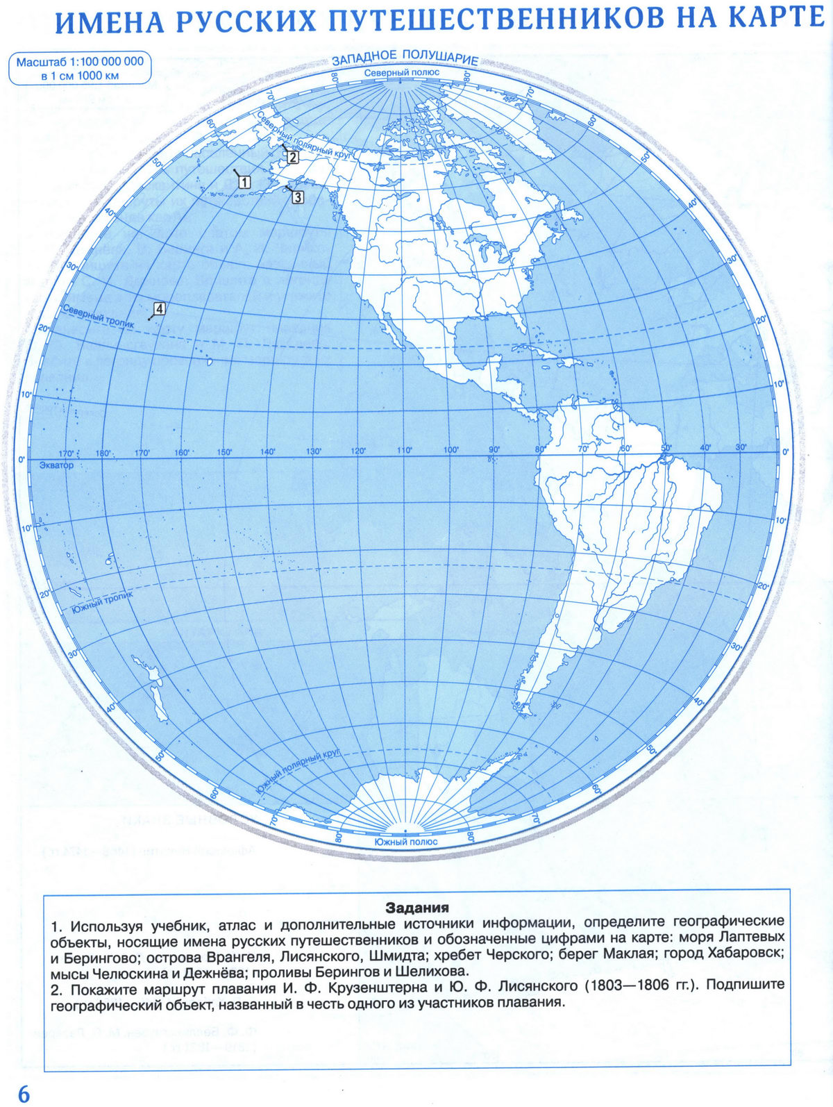 Контурная карта для печати - Имена русских путешественников на карте мира. Географии 5 класс Дрофа, скачать и распечатать