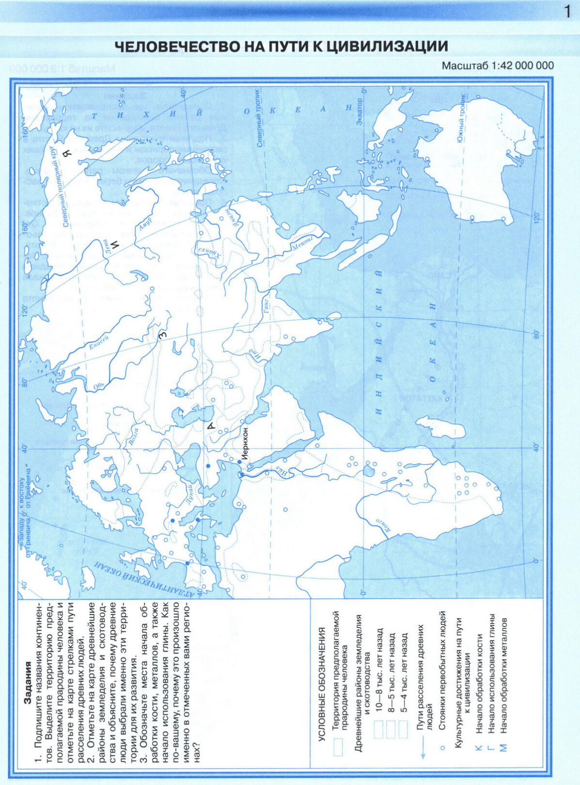 Человечество на пути к цивилизации - контурная карта по истории, стр 1.