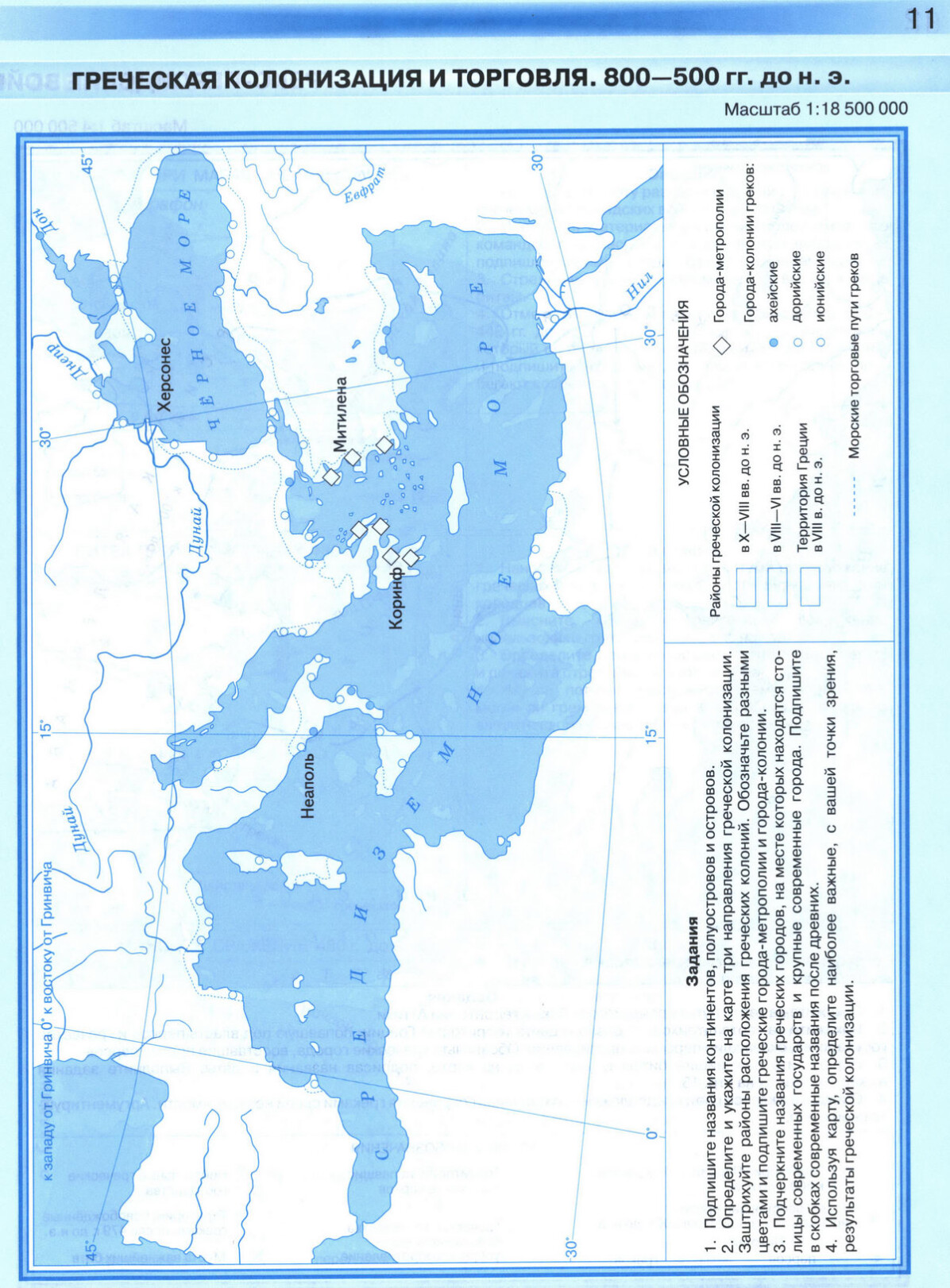 Греческая колонизация и торговля - контурная карта по истории, стр 11.