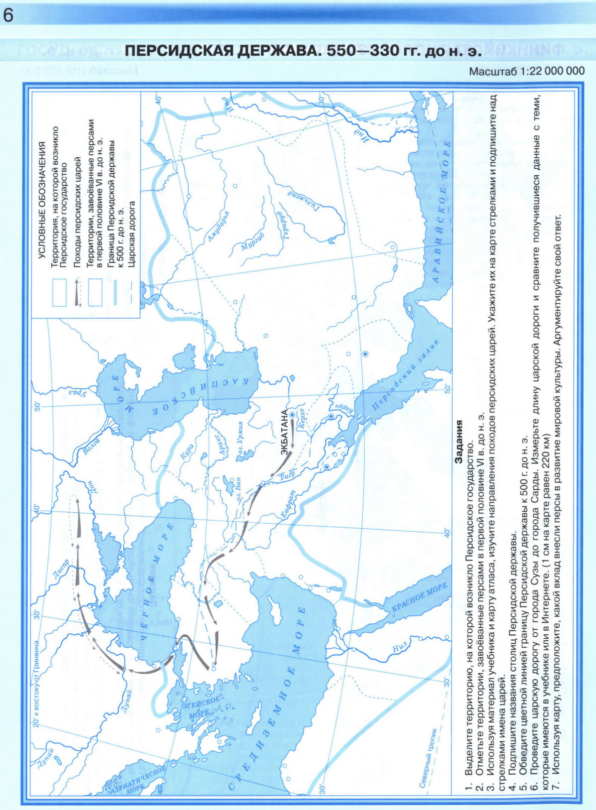 Персидская держава - контурная карта по истории, стр 6.